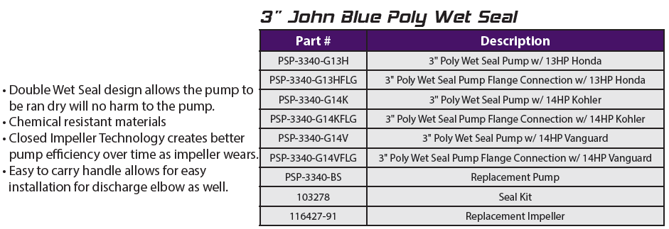 | SP-3350-E15TB | Cast | 3″ FPT | 400 | 64 | 15 HP Three Phase | Wet Seal |