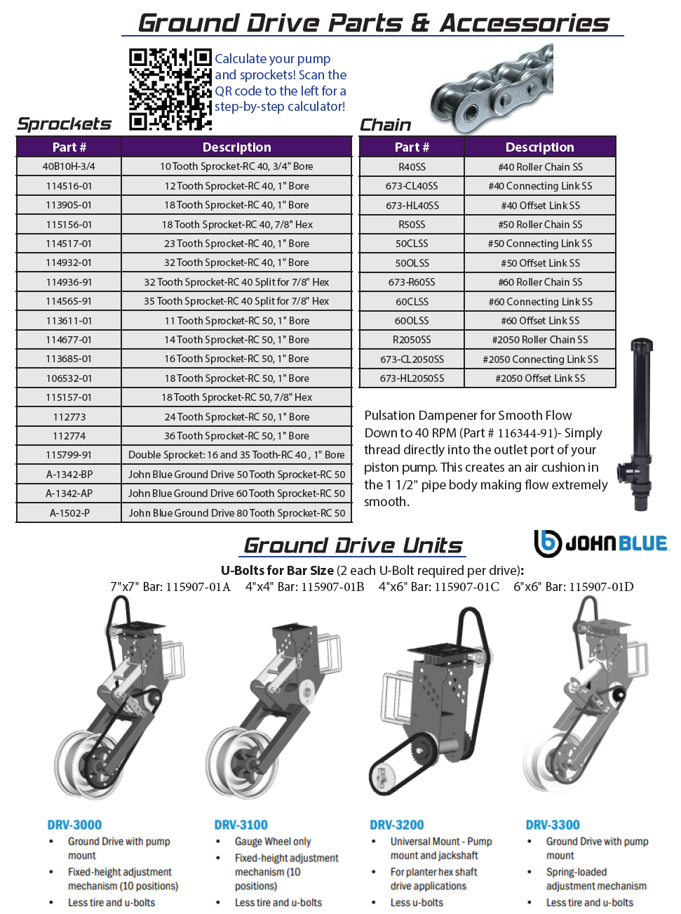All John Blue Ag Piston Pumps have been designed, engineered, and extensively field tested to set the standard for liquid metering pumps. Click Here to calculate your pump and sprocket ratio!